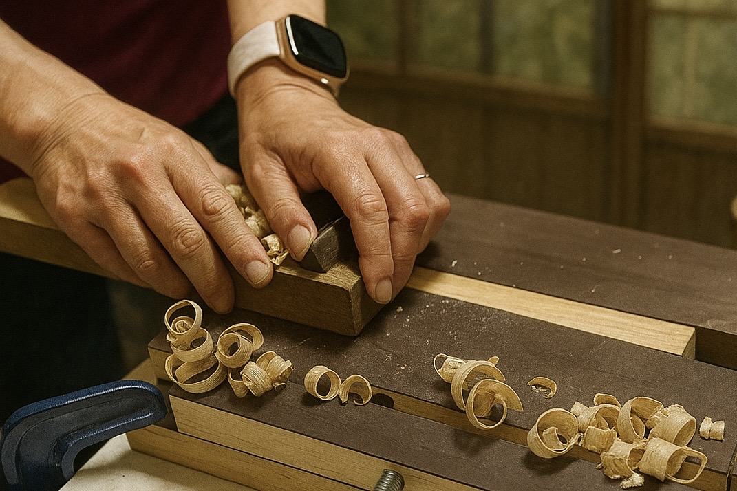 鉋(かんな)を使って竹を削ります。ナイフを使って削らないのでお子様でも安心して簡単にお作りいただけます!