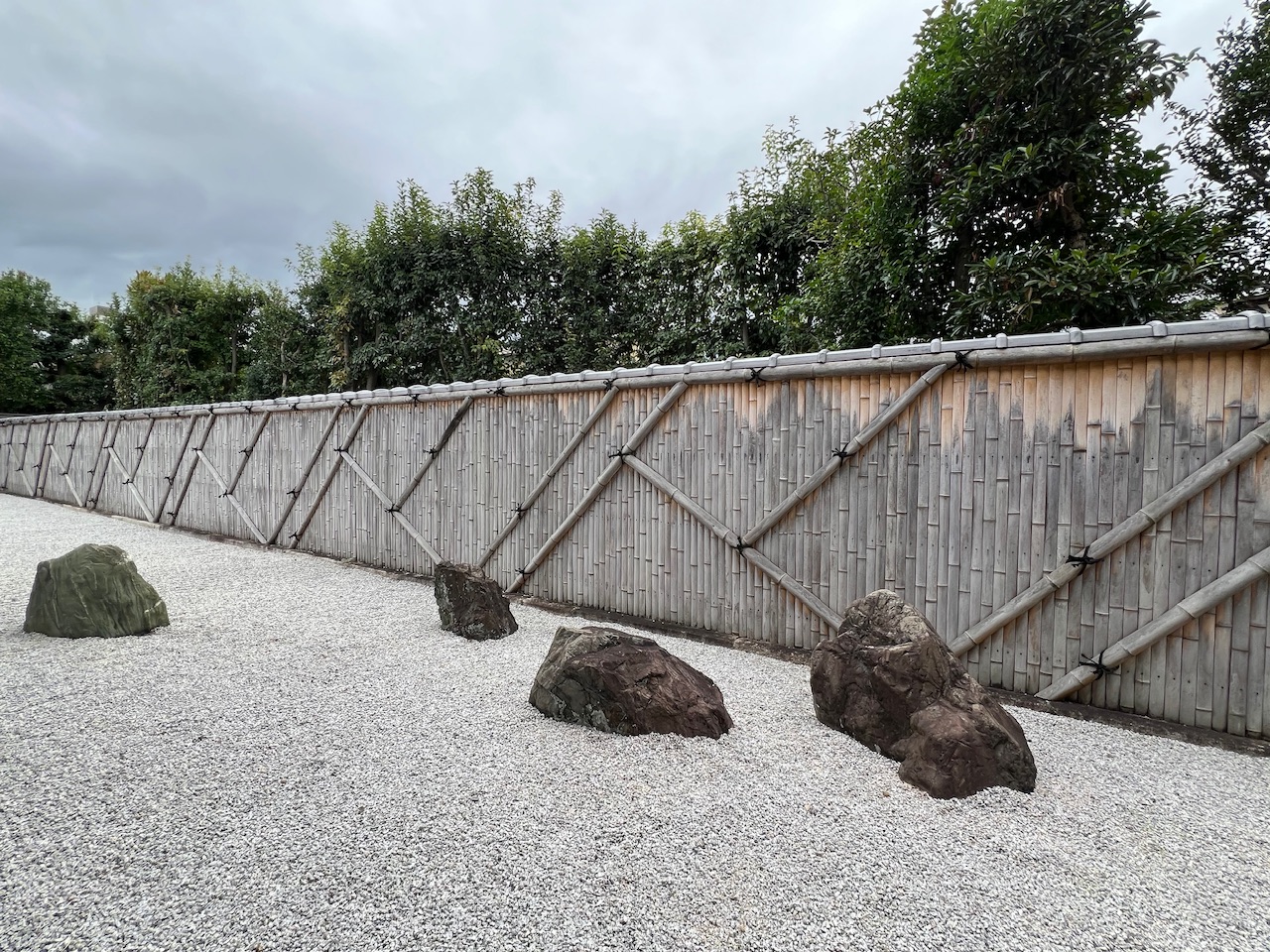 この庭園は『心和の庭』と呼ばれ、心という文字が竹垣の意匠にも使われています。