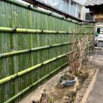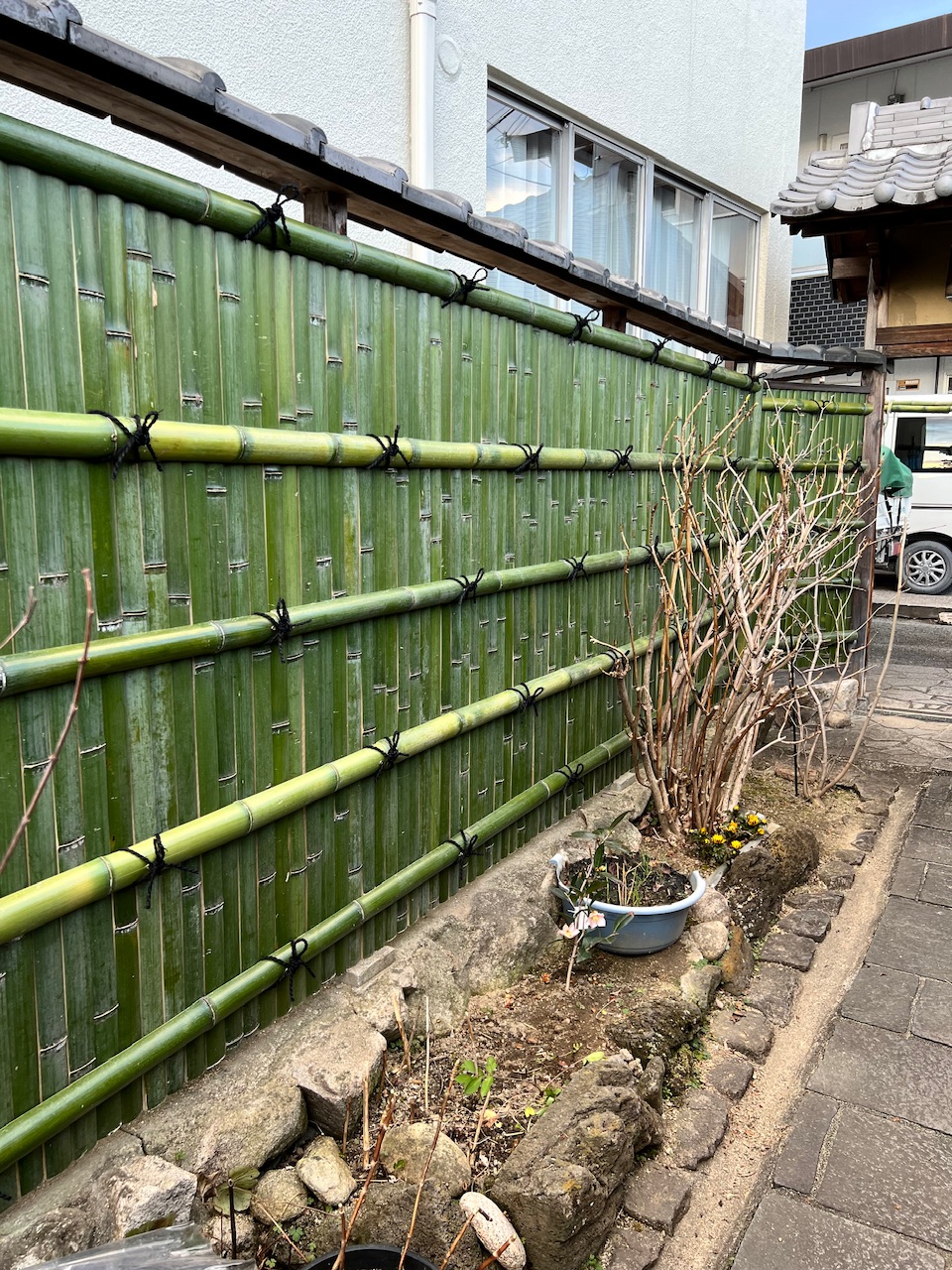 毎年、年末には四ツ目垣と枝折り戸と筧を交換しています。