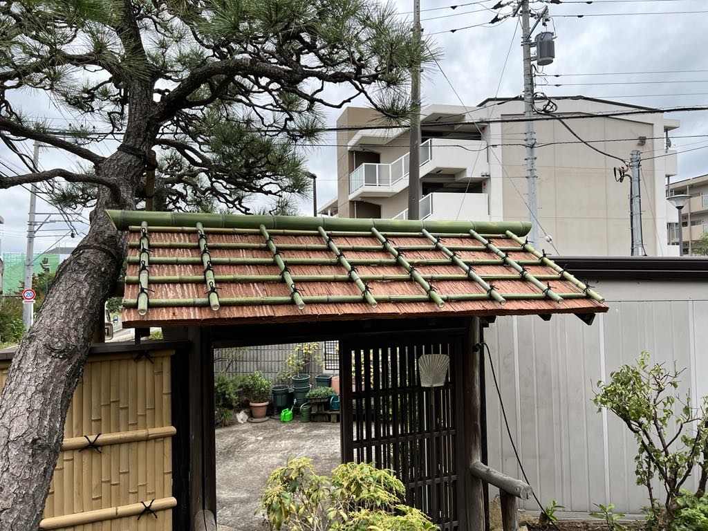 東京都の八王子にて飾り門の屋根葺き替えと建仁寺垣を施工させていただきました。