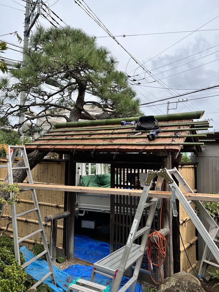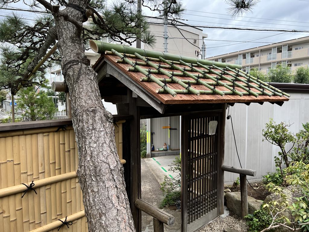 この夏の猛暑と大雨にも竹垣や門の屋根に心配することなく過ごせましたのも長岡銘竹様の施工のおかげでありますことに感謝申し上げます。