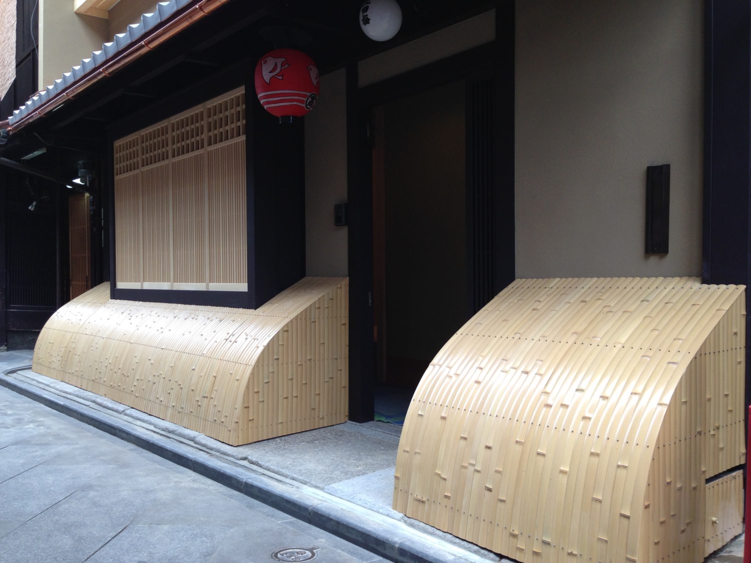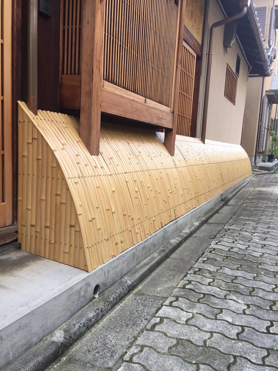 店舗やご自宅の軒先に犬矢来(駒寄せ)があることで、ひときわ華やかさを演出します。