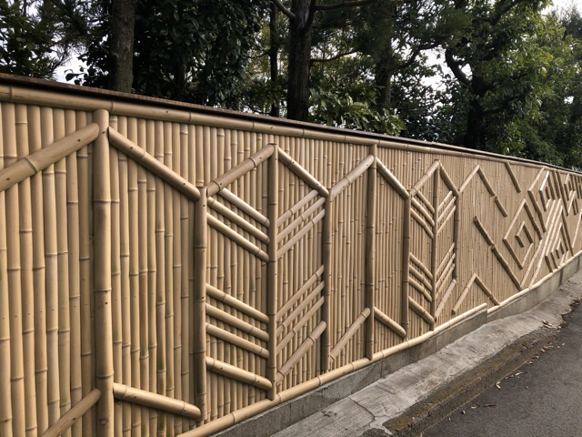 作庭家の重森三玲氏が龍吟庵で製作した意匠を参考に、ベースになる建仁寺垣に対して、押さえ竹は完全オリジナルのデザインで製作していきます。
