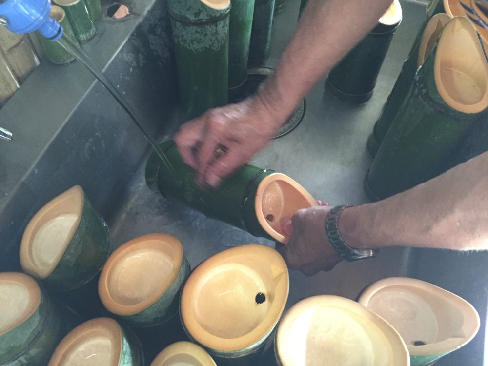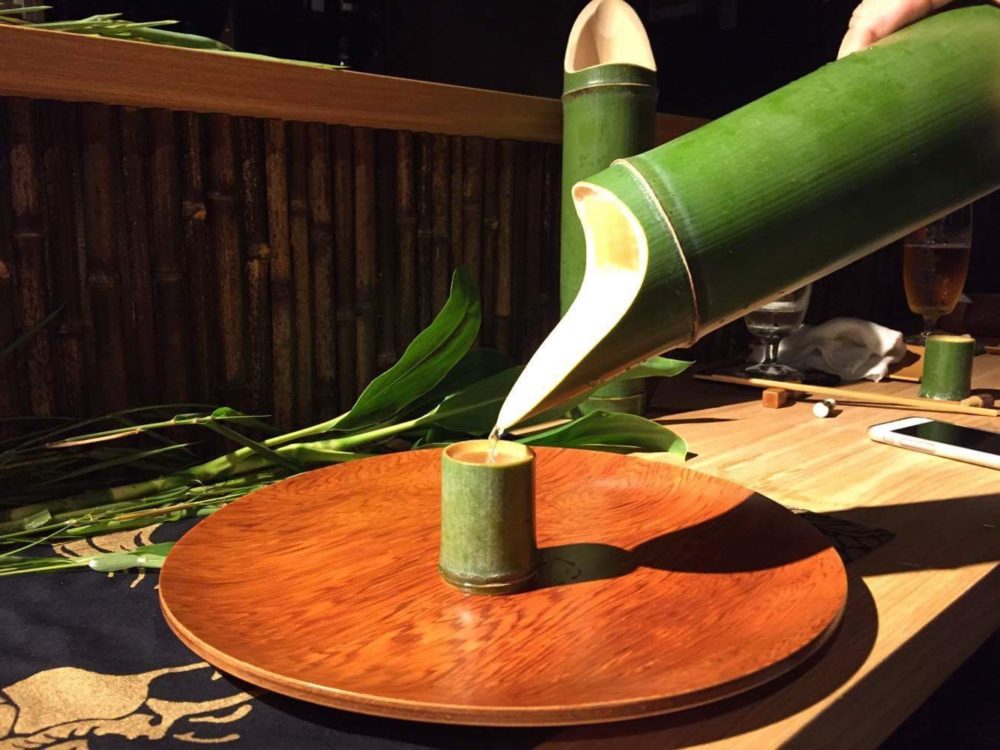 青竹で作られた徳利と御猪口でいただくお酒はほのかに竹の香りがし、上品な味わいになり、夏場は特に涼を感じることもできます。