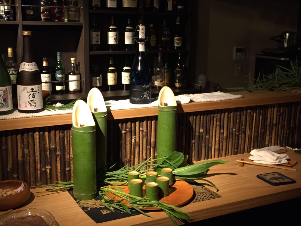 大切なお客様をお出迎えされる際に、京の地酒と青竹の徳利と御猪口で楽しいひと時をお過ごしください。