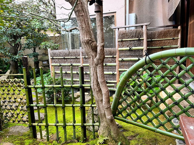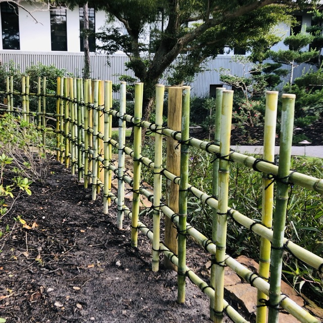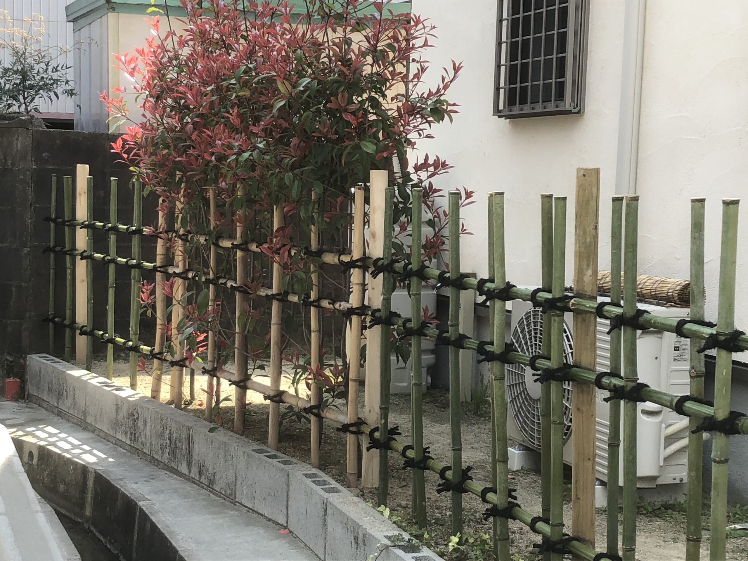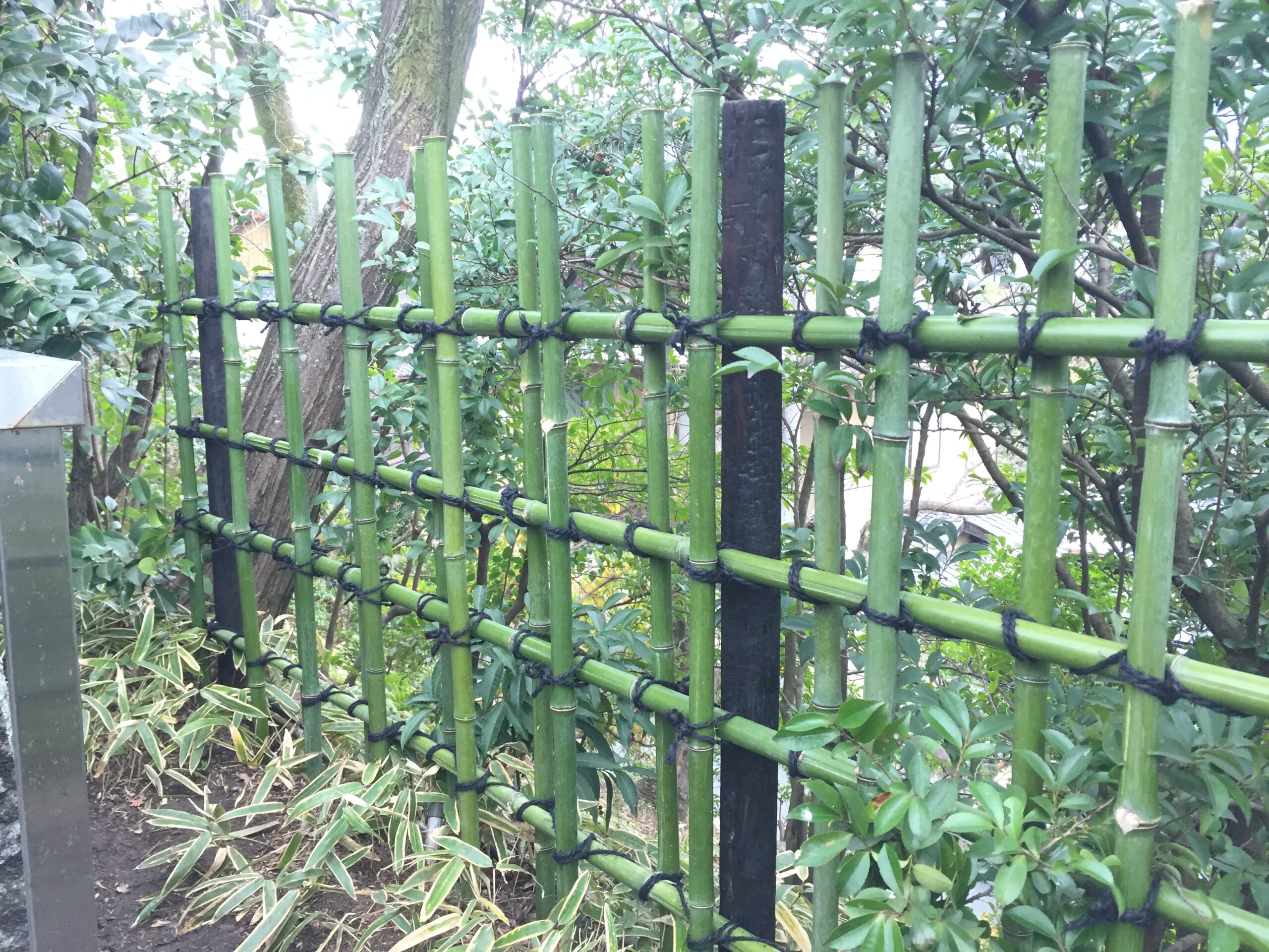 最も一般的な透かしが垣で庭以外にも公園や広場など様々なところで見られます。丸竹を四ツ目に組むだけの飾らない形状で、どこにでも合うことから幅広く利用されています。簡単な作りですが、様々なアレンジの仕方があり、変化の楽しめる垣です。