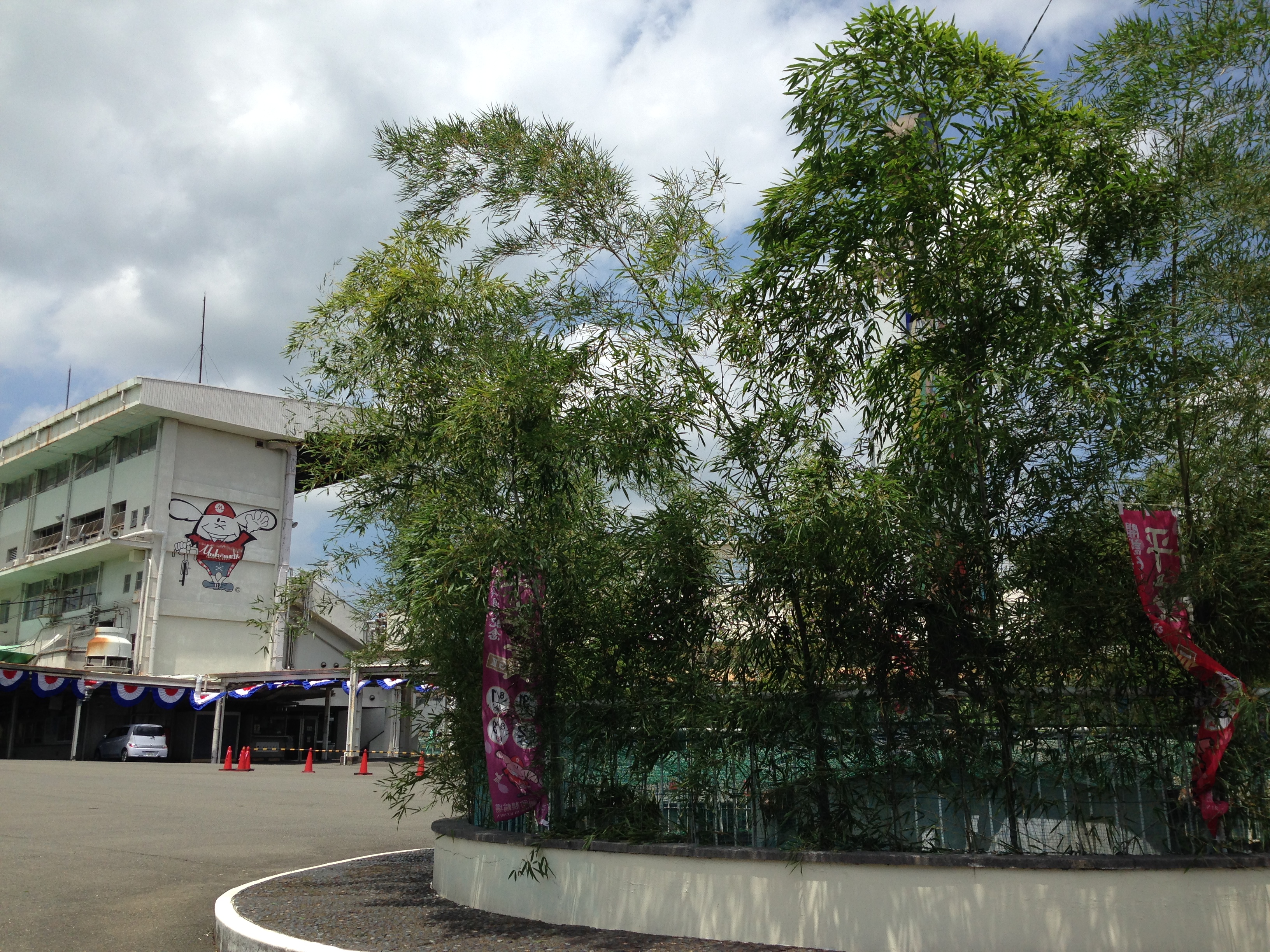 京都府向日市にあります向日町競輪場にて明日7/31〜8/3まで開催される『平安賞』に向けて、当社も加盟してます向日市竹産業振興協議会で竹のディスプレイを行ないました。