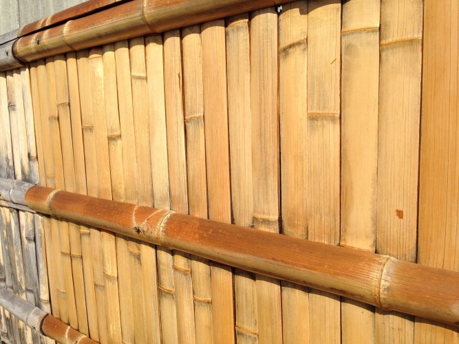 毎日見ていると気付かないものですが、竹垣は雨や紫外線の影響で日に日に黒ずんできています。