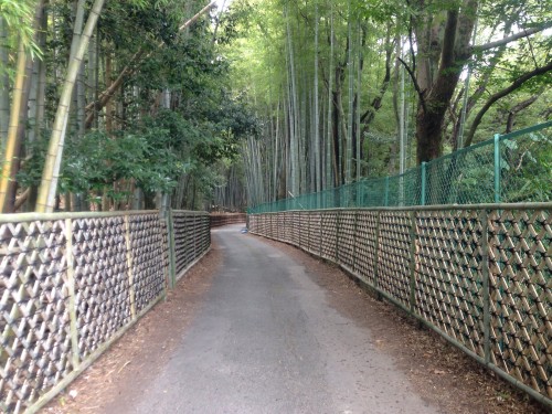 たけのこ藪の竹を借景に竹垣が延々と続く竹の径は“歩きたくなる道500選”にもえらばれたことのある京都府向日市の観光スポットです。