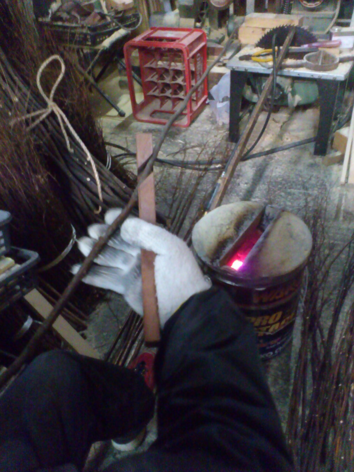 曲がったり歪んだりしてる幹を一本いっぽん真っ直ぐになるように手作業で直してから使います。