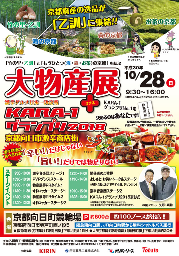 KARA-1グランプリ2018と同時開催される「大物産展」は、向日市竹産業振興協議会の一員として弊社による竹工芸製作体験を開催させていただきます。