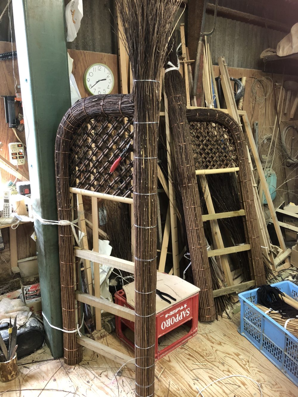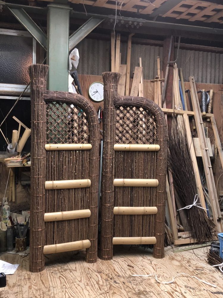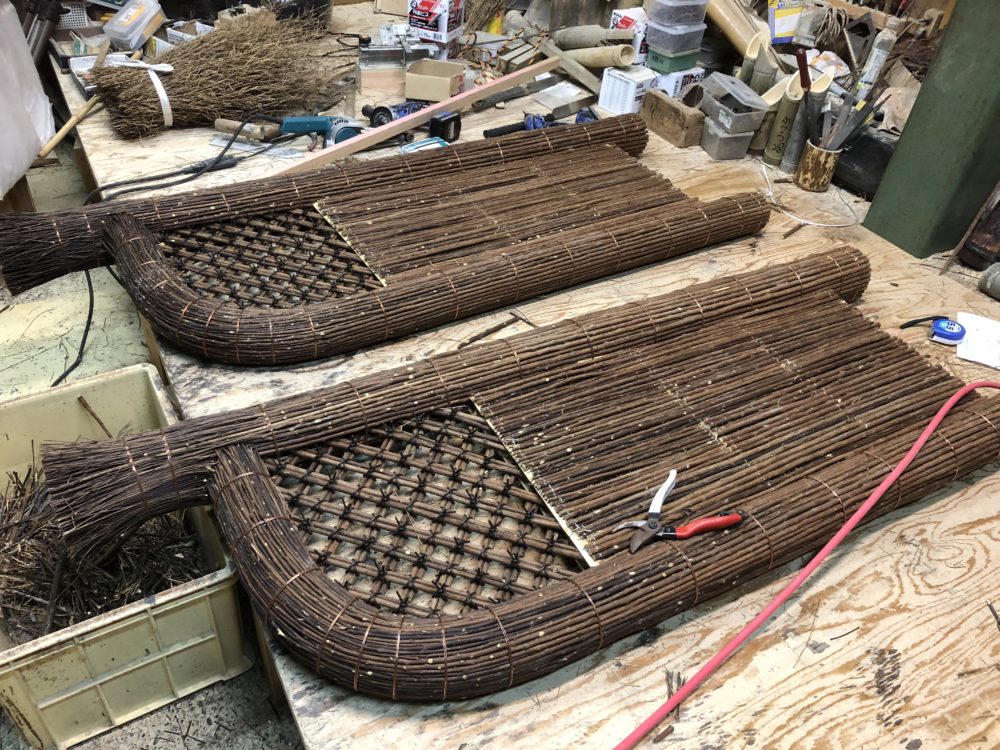 そこで、萩の玉袖垣は日本で作り発送し、枝折戸は実演で作ることとなりました!