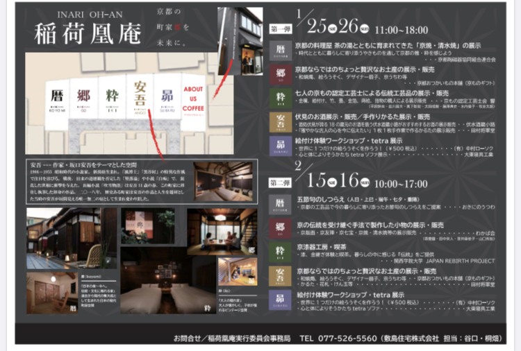 京もの認定工芸士の有志の7人のメンバーが『稲荷凰庵』の「粋」という町屋で展示参加いたします。