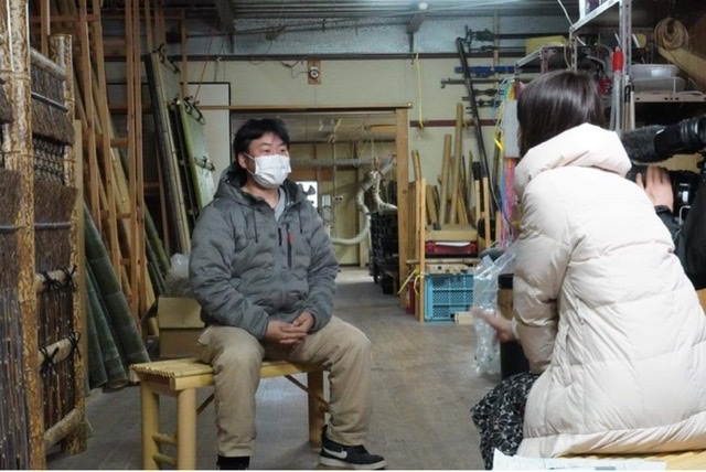 工房内で竹垣を制作する様子も撮影していただきました。