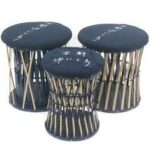 展示商品は、竹製ハンガー、竹の鼓椅子(オリジナルTシャツを座面にリユースしたサスティナブルタイプ。)、子供用の玩具3種。