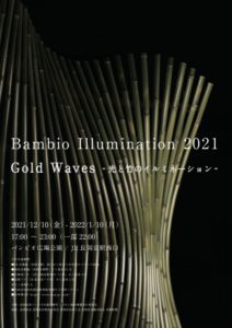 今年で17回目となるバンビオイルミネーションは「Gold Waves~光と竹のイルミネーション~」のテーマでJR長岡京駅周辺を飾り付けます。