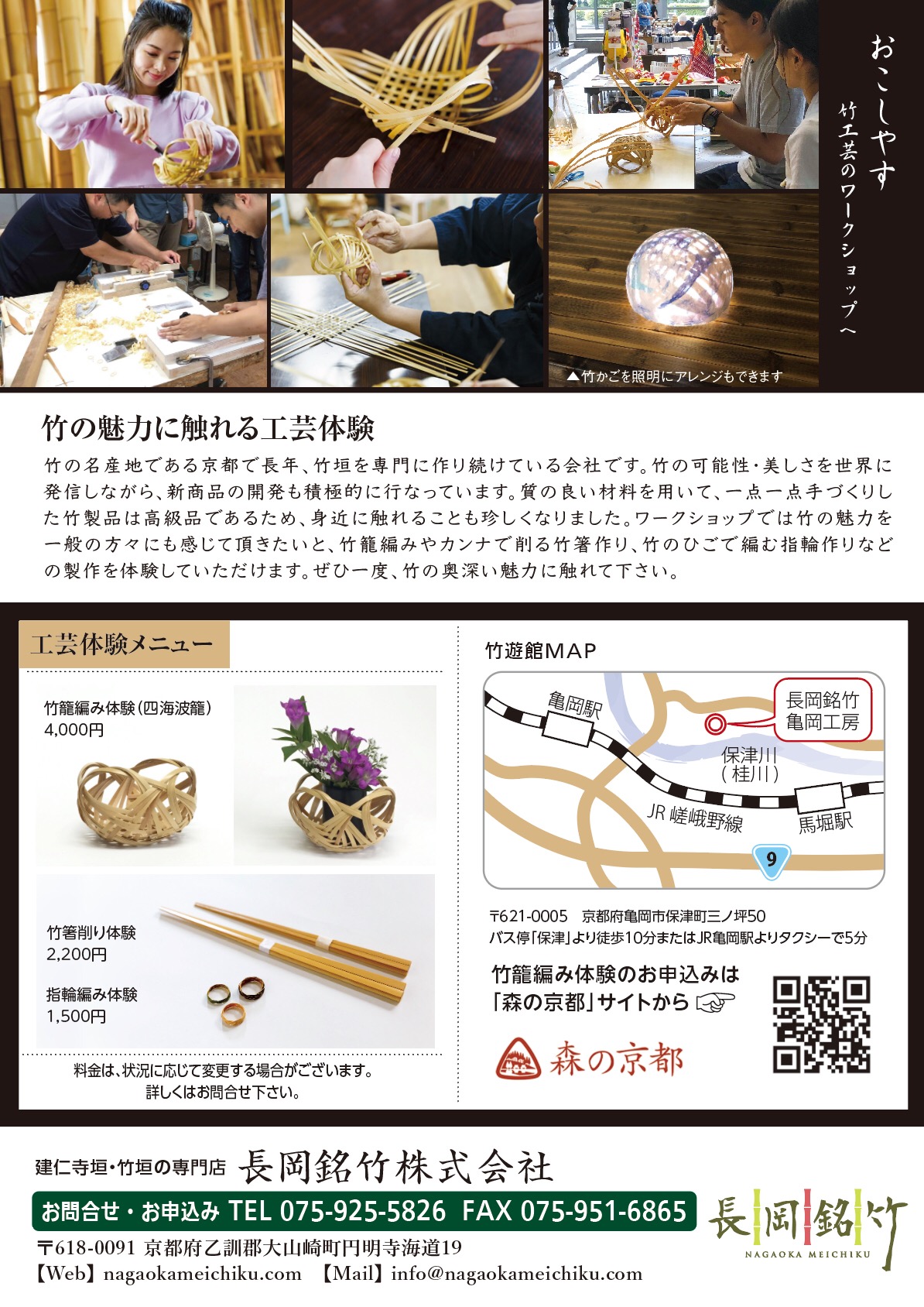 竹工芸ワークショップは、弊社工房内でも随時開催中でございます。