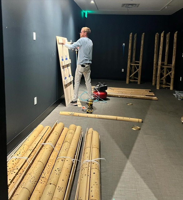 【竹で世界中を笑顔に!】というキャッチフレーズを掲げた代表の真下の想いを乗せた展示になっております。