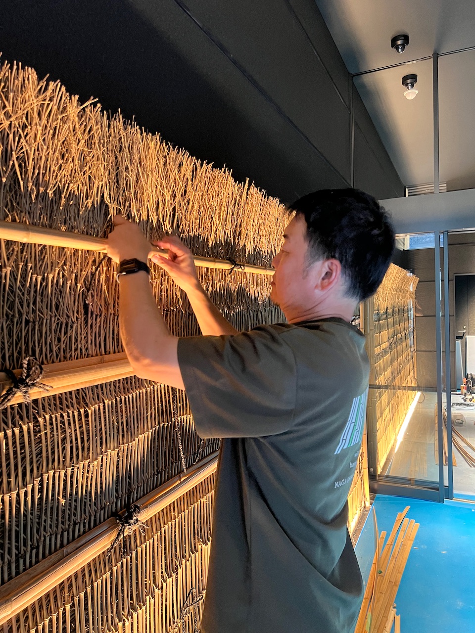 ※こちらから入ってすぐ左側の壁に竹垣を設置させていただきました。