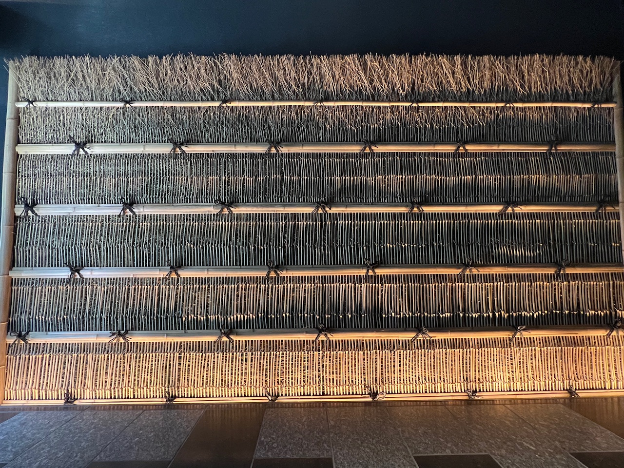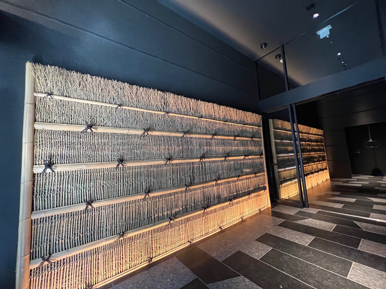 「ふふ 東京 銀座」様の玄関に弊社の竹垣(竹枝穂垣・節揃えタイプ)を採用していただきました。